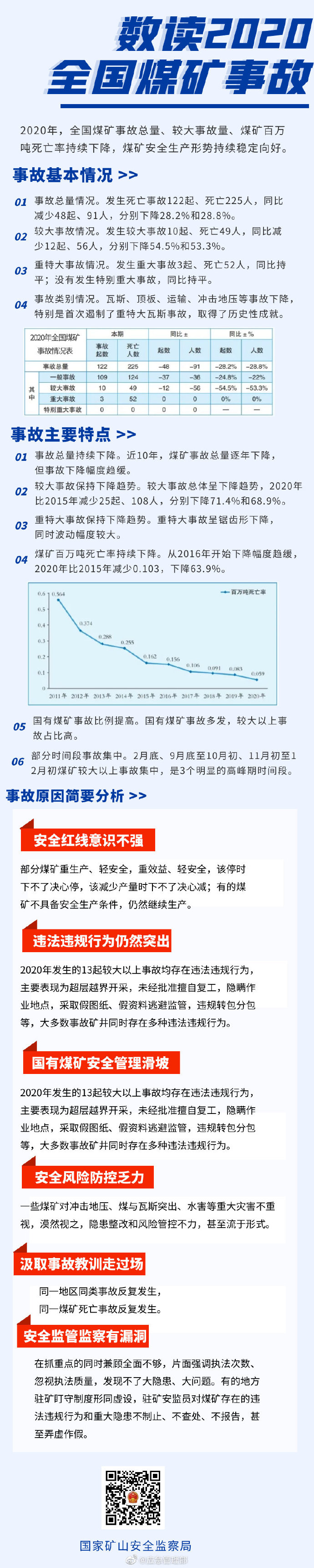 2020年,面對極其嚴峻復雜的國內(nèi)外形勢,特別是新冠肺炎疫情的嚴重沖擊,在黨中央、國務院的堅強領(lǐng)導下,各地區(qū)、各有關(guān)部門和廣大煤礦企業(yè)統(tǒng)籌抓好疫情防控和安全生產(chǎn)工作,全國煤礦事故總量、較大事故量、煤礦百萬噸死亡率持續(xù)下降,煤礦安全生產(chǎn)形勢持續(xù)穩(wěn)定向好。