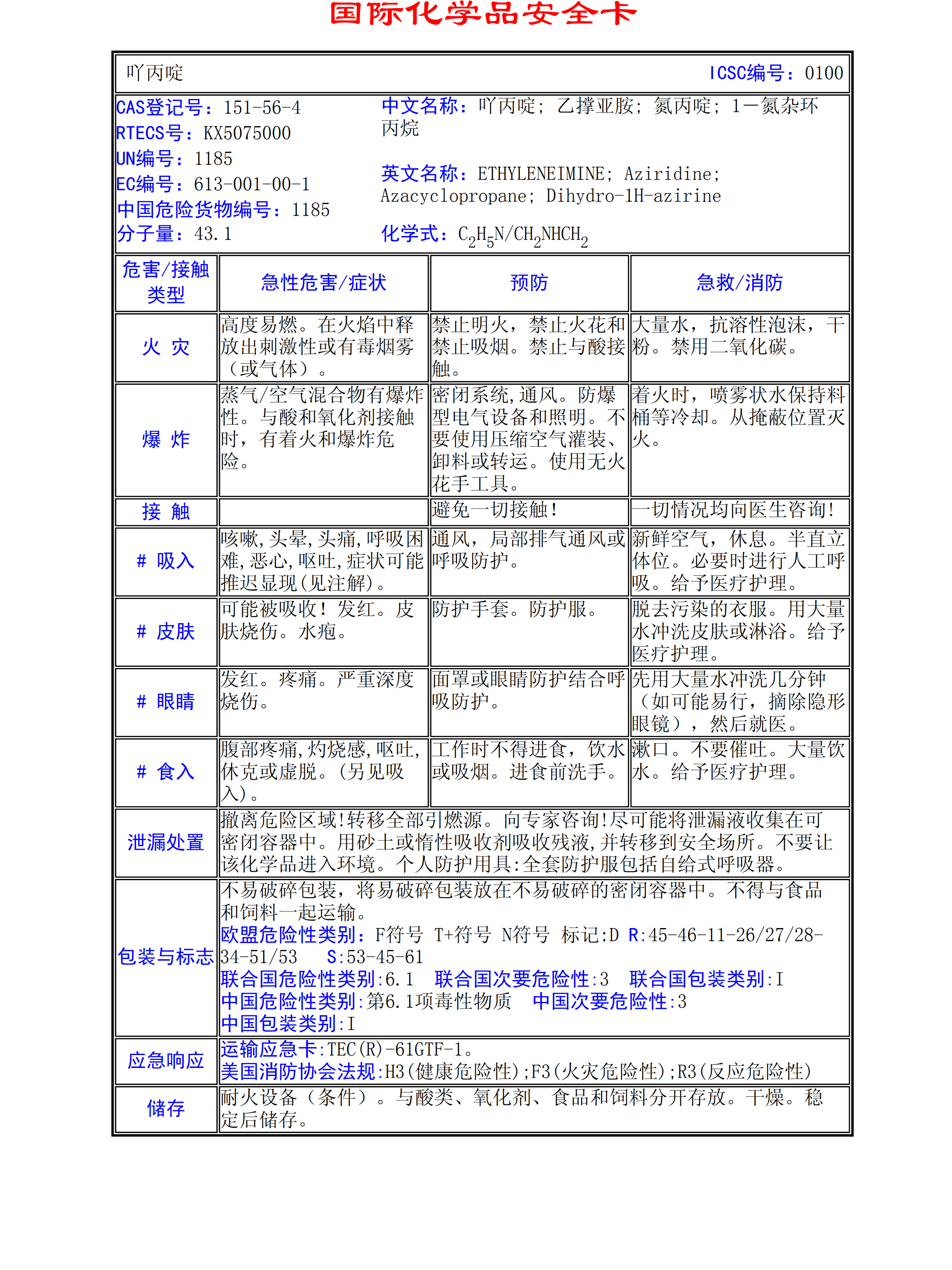 吖丙啶MSDS