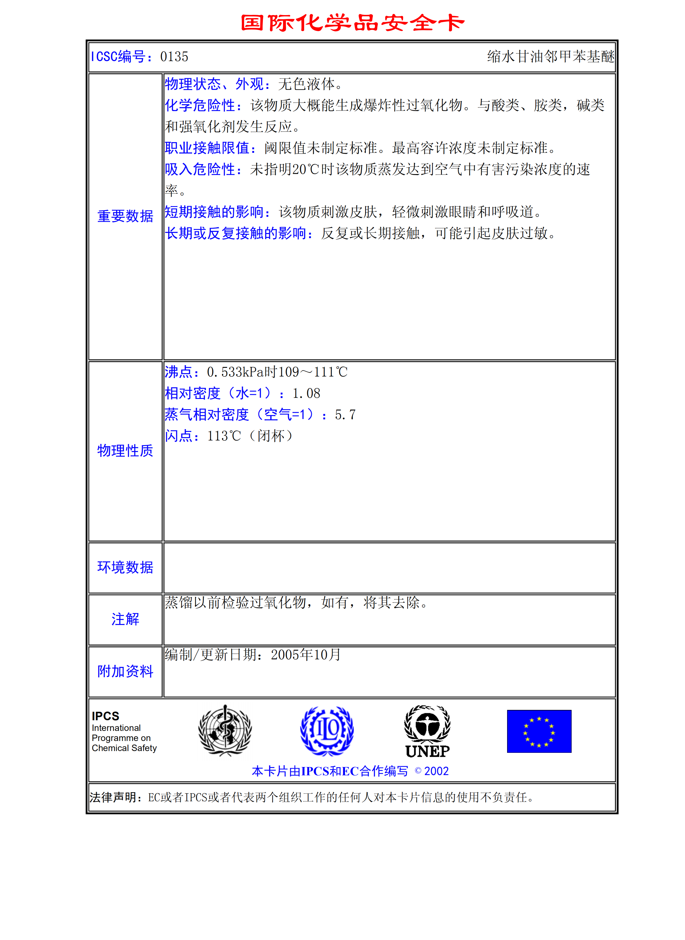 縮水甘油鄰甲苯基醚MSDS