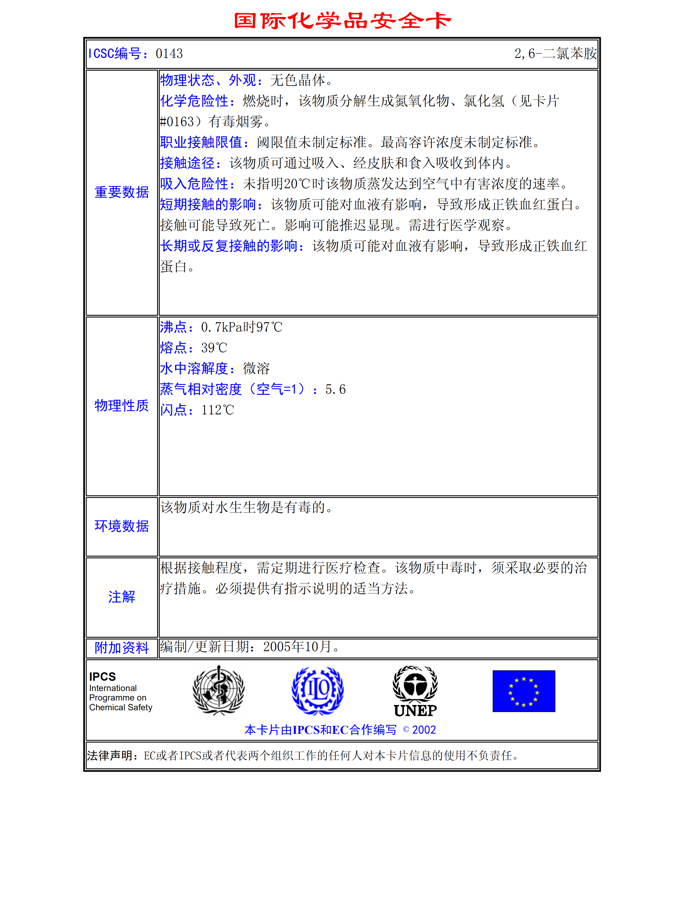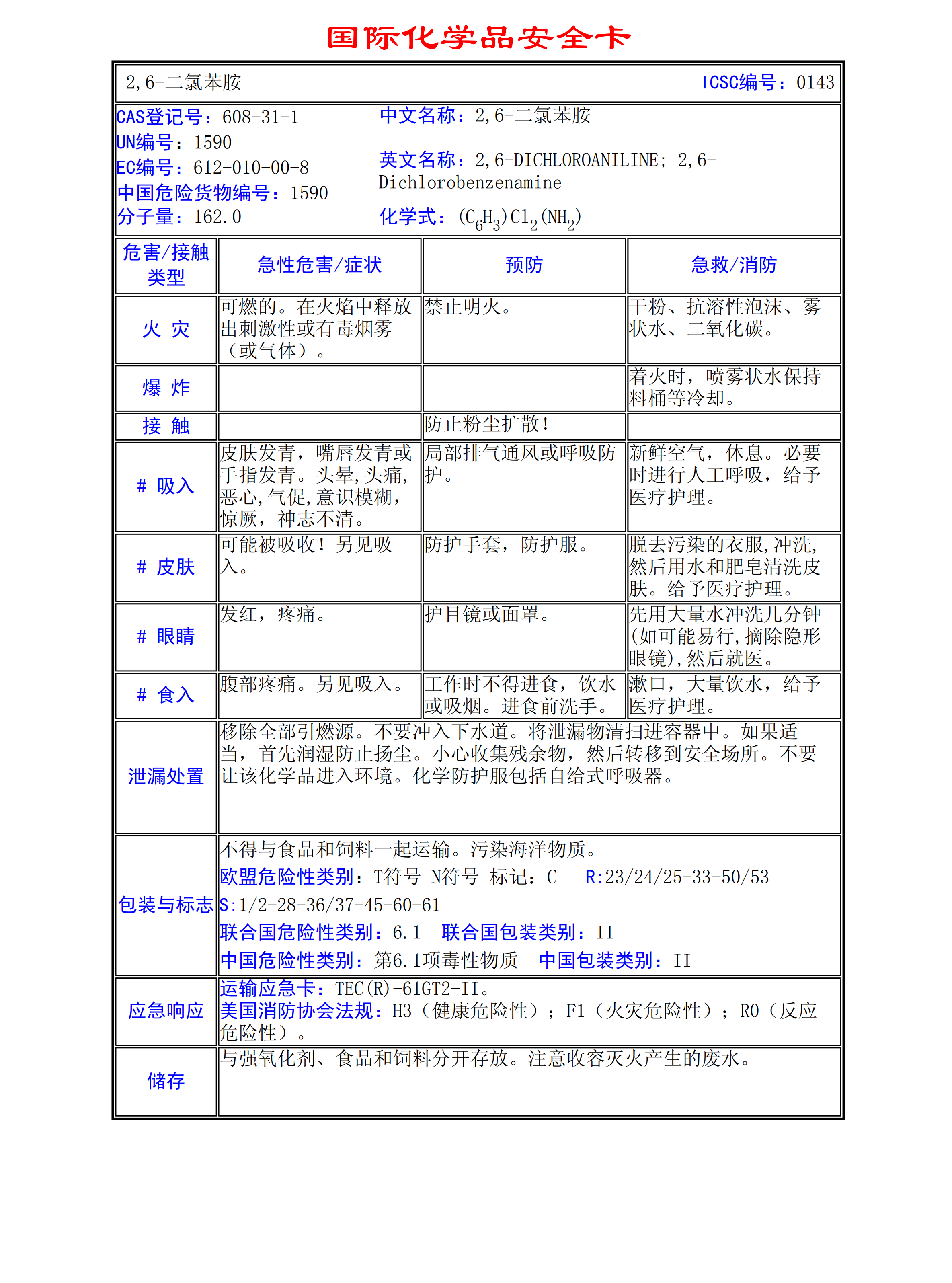 2,6-二氯苯胺MSDS