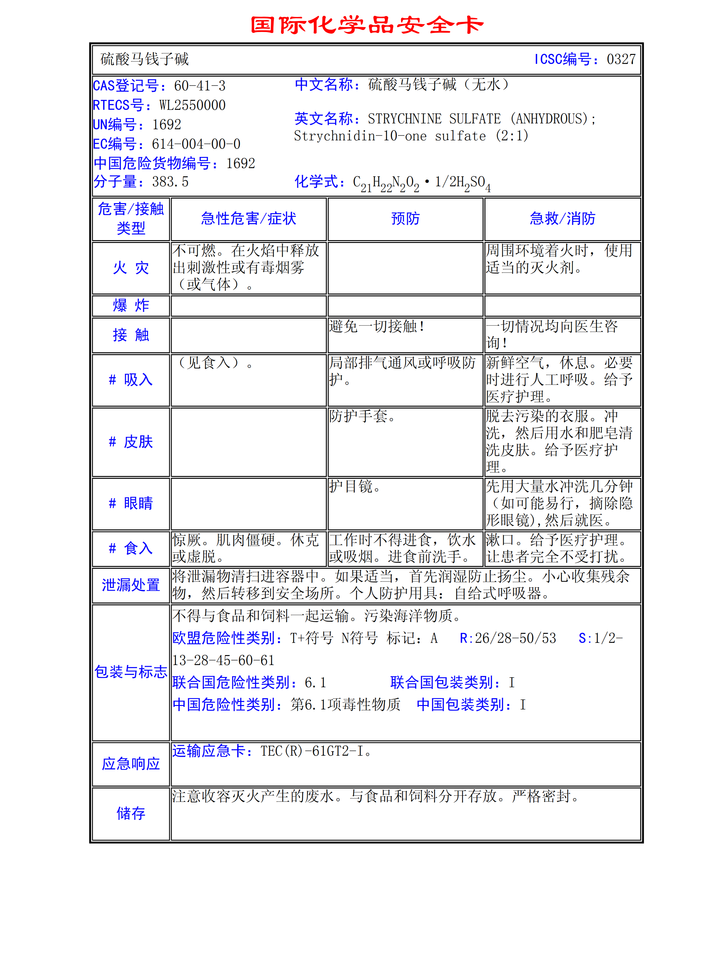 硫酸馬錢(qián)子堿MSDS
