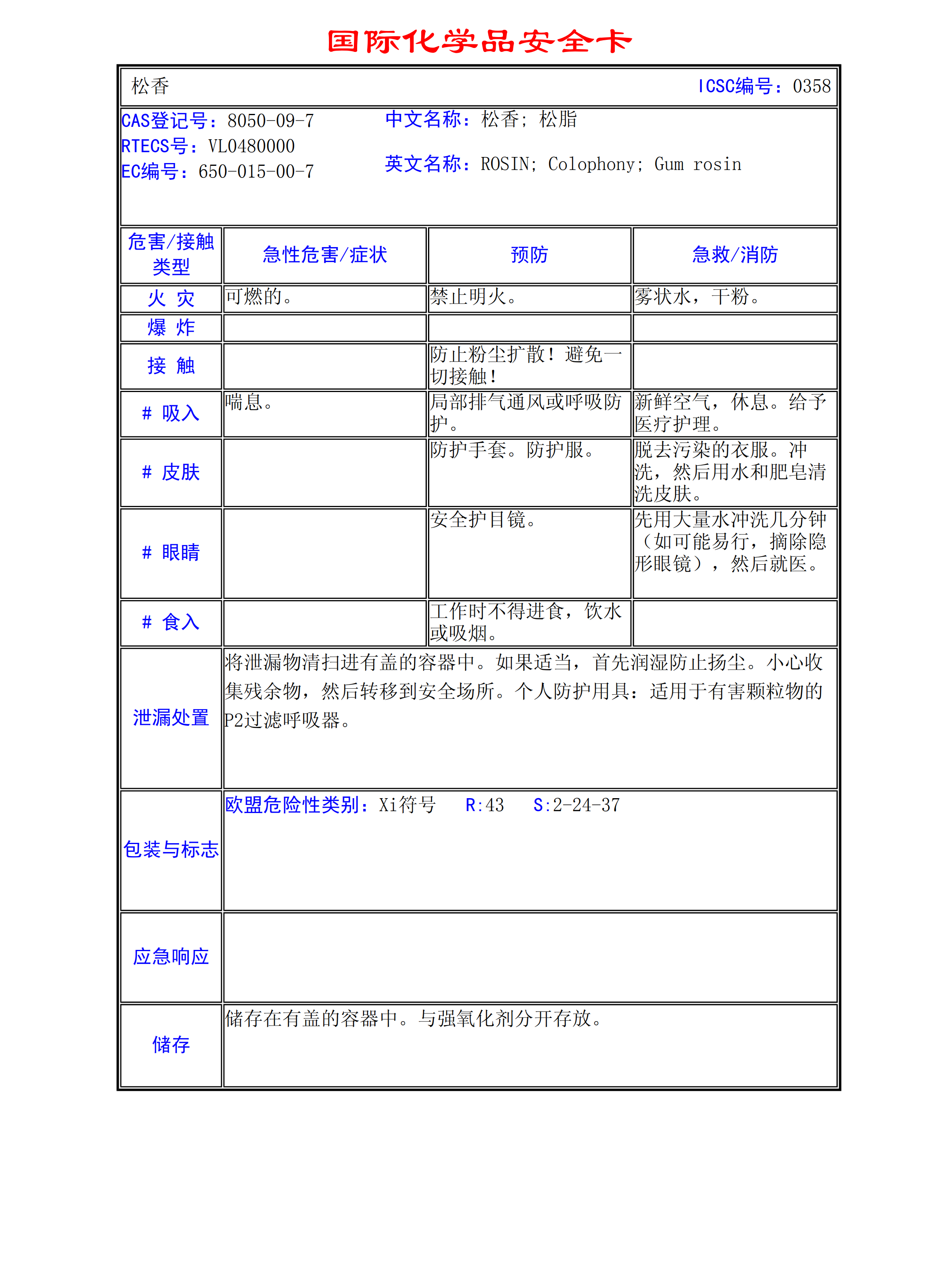 松香MSDS