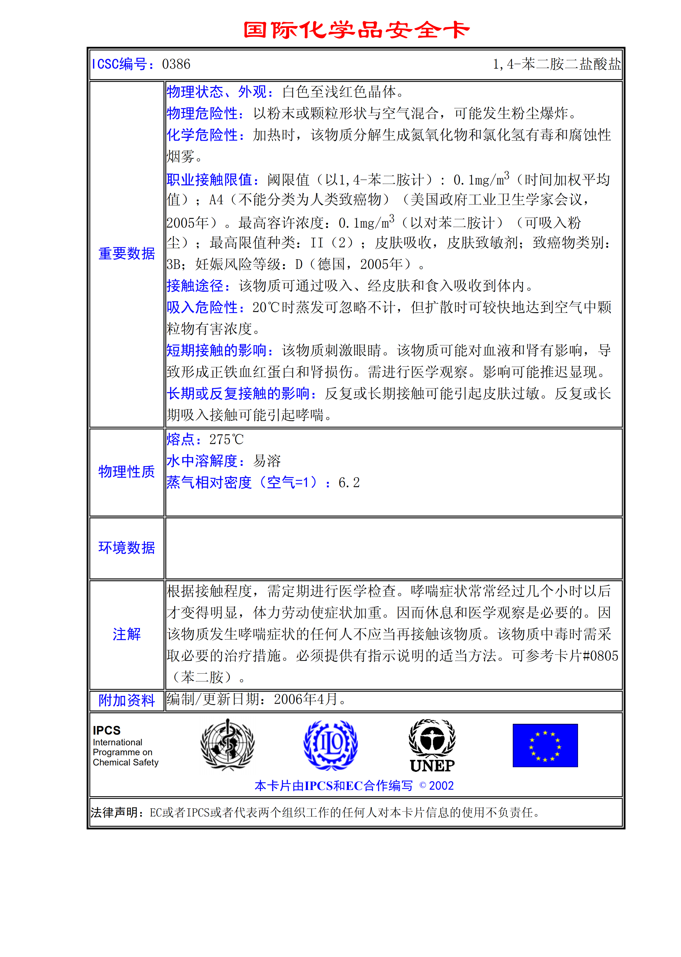 1,4-苯二胺二鹽酸鹽MSDS