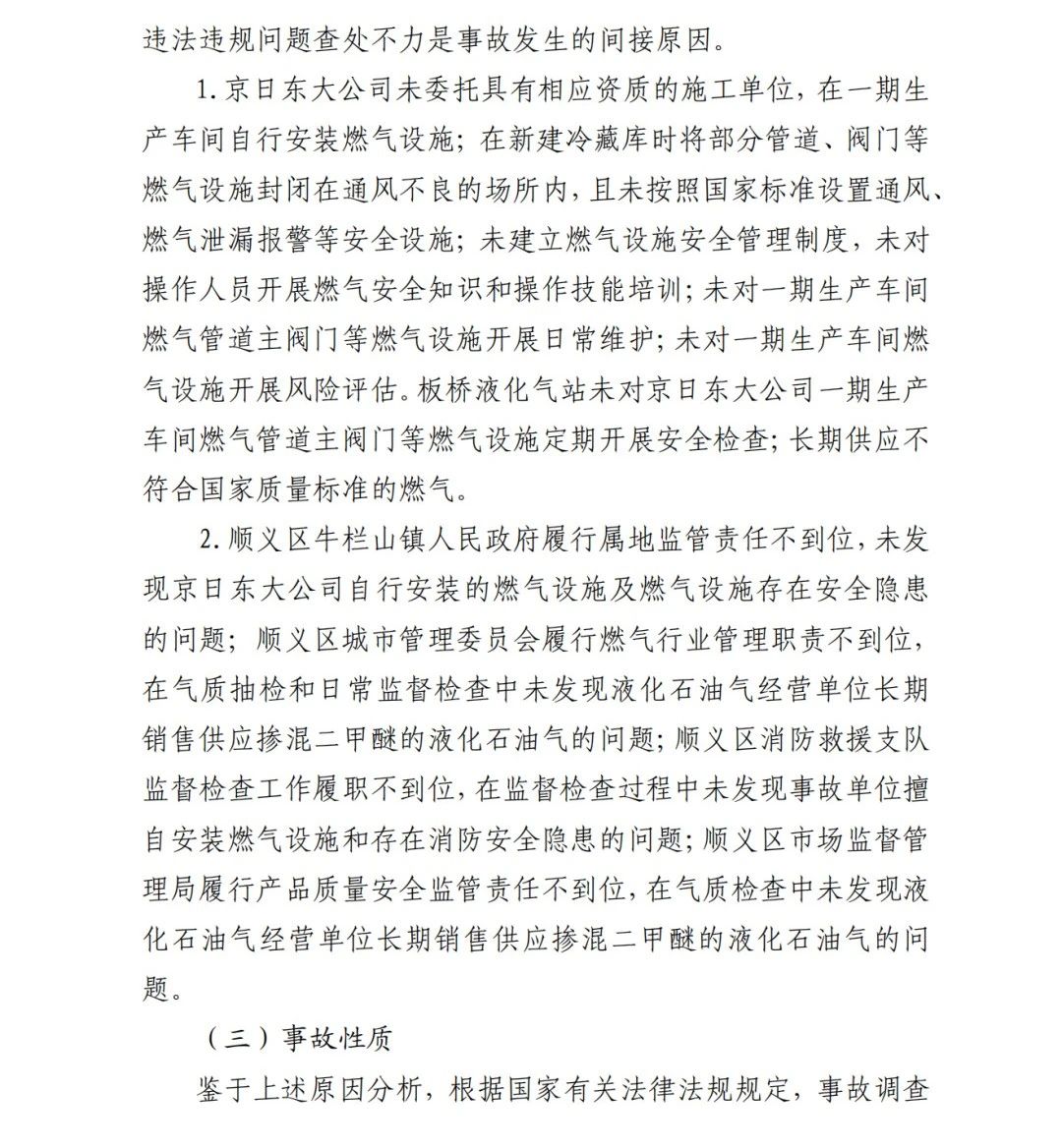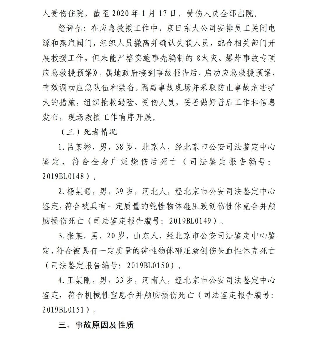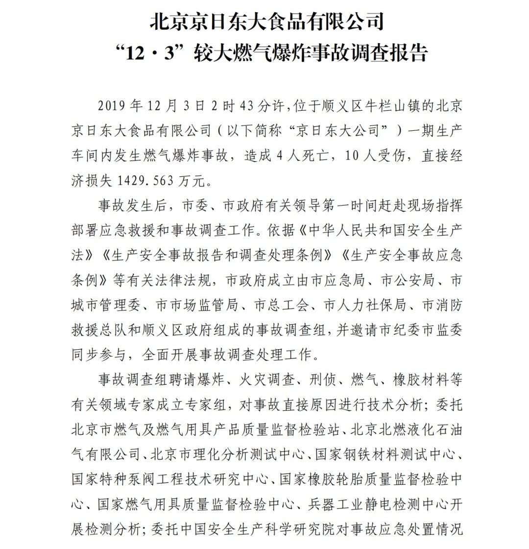 2019年12月3日2時43分許,北京順義區(qū)牛欄山鎮(zhèn)的(以下簡稱“京日東大公司”)一期生產(chǎn)車間內(nèi)發(fā)生燃?xì)獗ㄊ鹿?,造?人死亡,10人受傷,直接經(jīng)濟(jì)損失1429.563萬元。