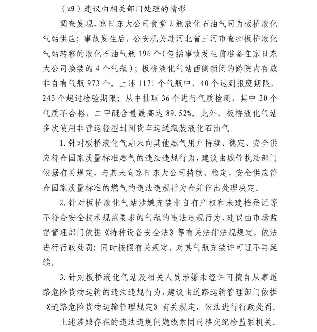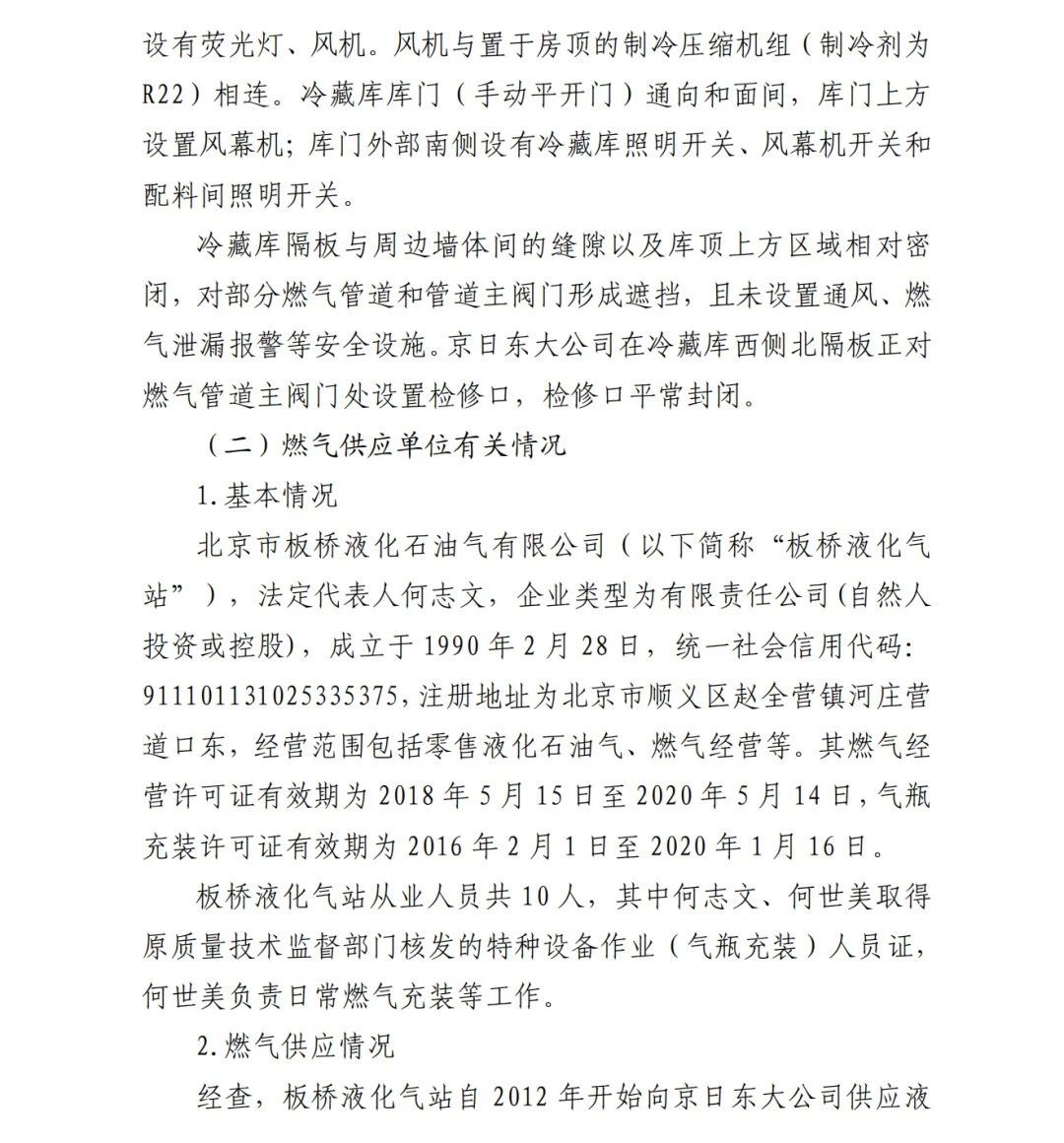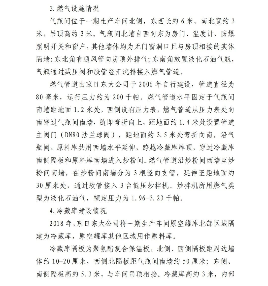 4.方勇忠,曾先后擔(dān)任京日東大公司生活部副部長兼設(shè)備部部長助理、設(shè)備部部長、生產(chǎn)部部長兼設(shè)備部部長、總經(jīng)理助理2019年4月辭職)。2006年負(fù)責(zé)京日東大公司一期生產(chǎn)車間建設(shè)工作,期間未委托具有相應(yīng)資質(zhì)的施工單位,組織本單位人員自行建設(shè)安裝燃?xì)庠O(shè)施,導(dǎo)致燃?xì)庠O(shè)施安全隱患長期存在;2018 年負(fù)責(zé)一期生產(chǎn)車間內(nèi)新建冷藏庫建設(shè),將部分管道、閥門等燃?xì)庠O(shè)施封閉在通風(fēng)不良的場所內(nèi),且未設(shè)置通風(fēng)、燃?xì)庑孤﹫缶劝踩O(shè)施,對事故發(fā)生負(fù)有直接責(zé)任,涉嫌重大責(zé)任事 故罪。2020 年 1 月 23 日被順義公安分局刑事拘留,2 月 6 日取 保候?qū)?,建議依法追究刑事責(zé)任。