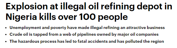 據(jù)外媒最新報道,這個慘劇就發(fā)生在4月22日晚上,非洲最大的原油生產(chǎn)國尼日利亞,位于伊莫州(Imo)的一家非法煉油廠,這里是尼日利亞三角洲地帶,靠近森林地帶。