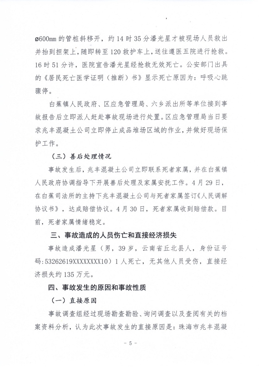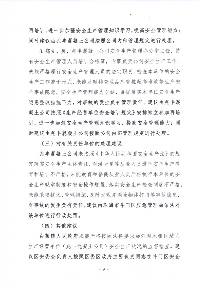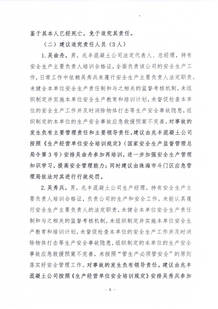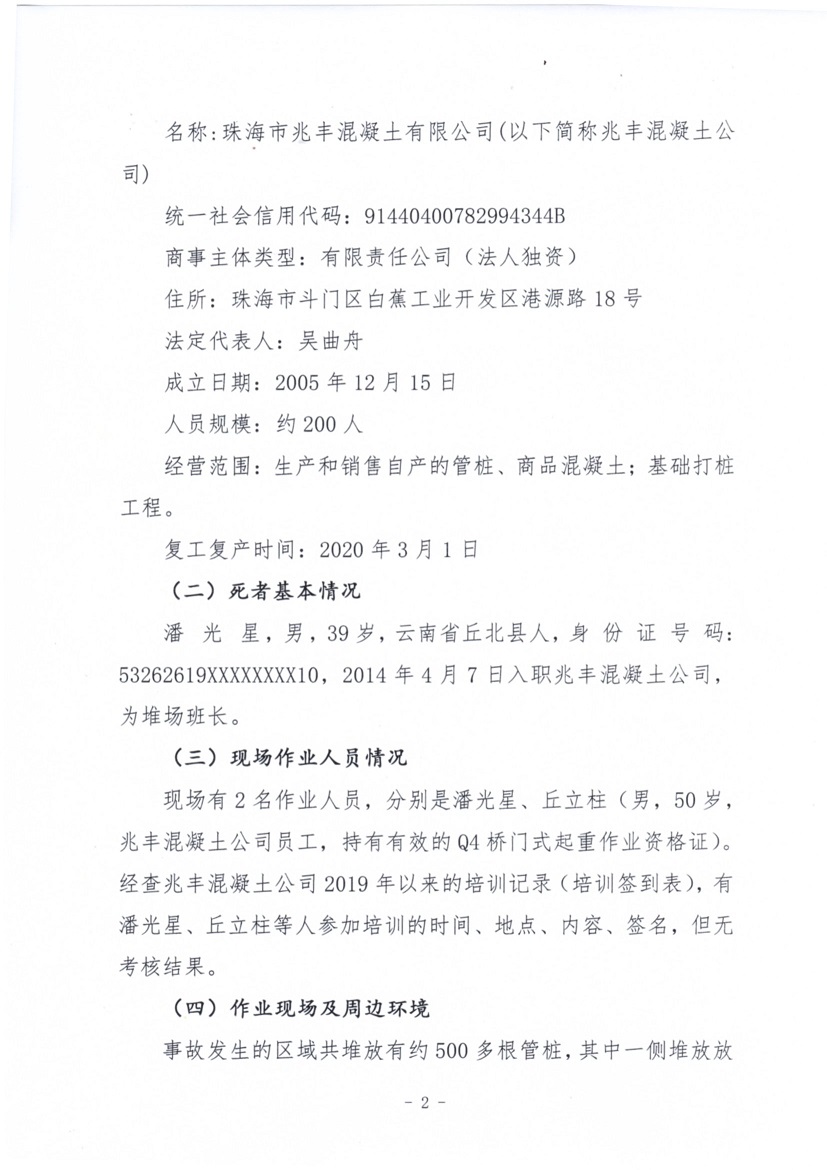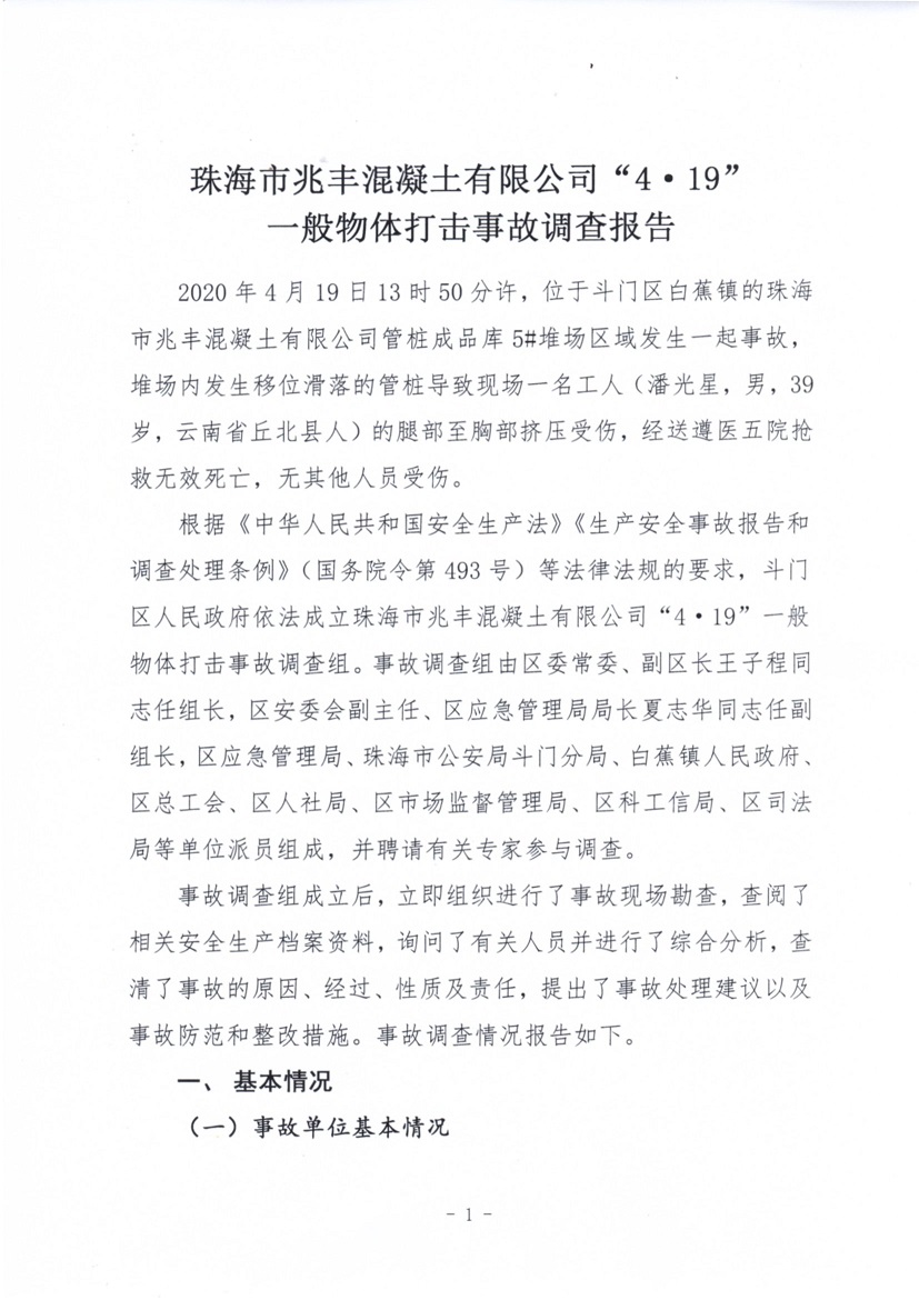 珠海市兆豐混凝土有限公司“4·19”一般物體打擊事故調(diào)查報告