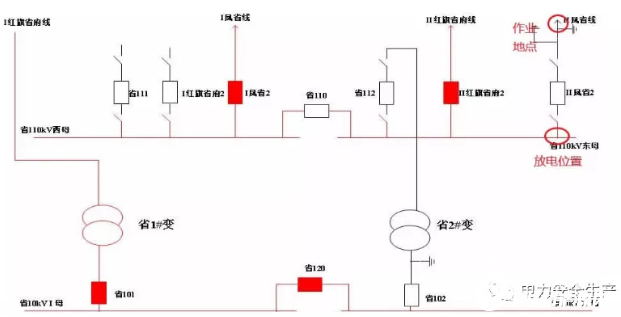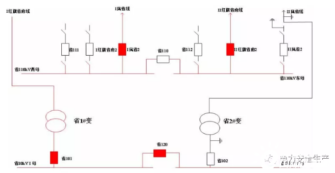 事發(fā)項目為某公司110千伏某變電站110千伏配電裝置改造,改造內容為更換110千伏室內敞開式手車斷路器,施工中標單位為某集團有限公司電力安裝分公司(省管產(chǎn)業(yè)單位,簡稱“安裝分公司”)。為不影響重要用戶供電,改造期間變電站采用Ⅰ紅旗省府線直接串帶省1#變、Ⅱ鳳省線直接串帶省2#變的過渡方式運行。6月12日改造完成后,110千伏母線恢復運行。(運行方式見圖1、圖2)