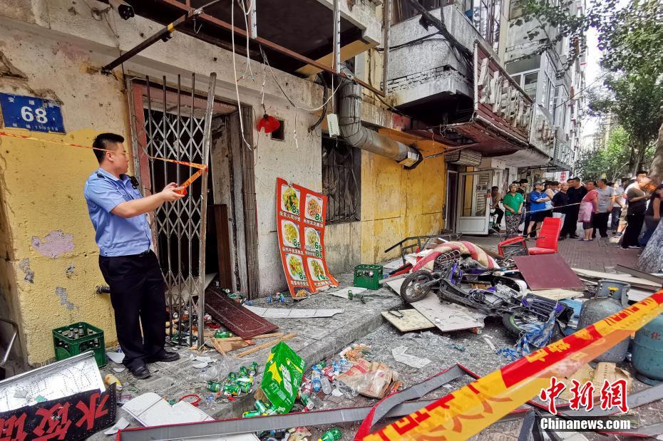 8月5日早8時(shí)左右,位于哈爾濱市道里區(qū)安順街的一家餐館發(fā)生疑似燃?xì)獗?,現(xiàn)場一片狼藉,爆炸震碎二樓樓板,一老人墜落受傷,餐館老板娘受傷嚴(yán)重,目前兩人已被送往醫(yī)院就醫(yī)。圖為事發(fā)餐館門口。中新社記者 范英杰 攝