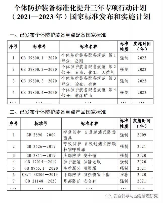 個體防護(hù)裝備標(biāo)準(zhǔn)化提升三年專項(xiàng)行動計(jì)劃 (2021—2023年)